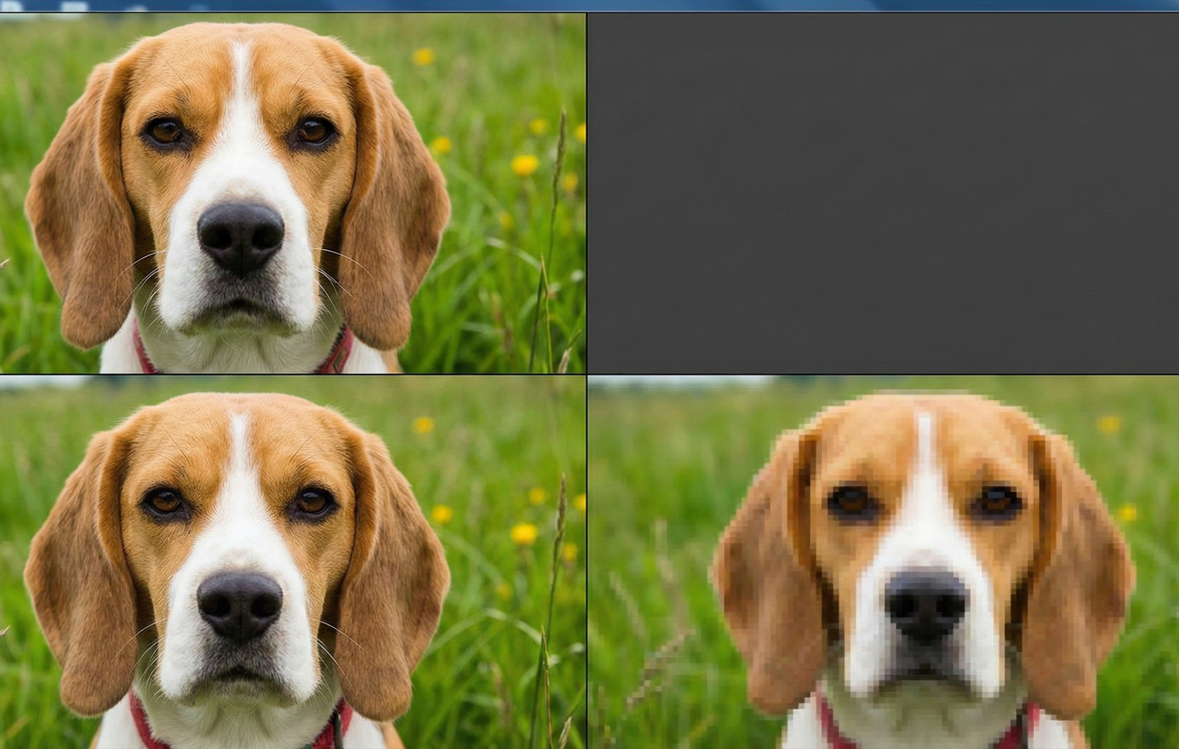 A perfect analogy comes from image compression. Imagine an original, high-resolution photo of a beagle (top left). In the adaptive-precision version (bottom left), the image is almost indistinguishable from the original, yet only a fraction of the underlying data (12 of 191 columns, in this case) is stored in high-precision fp32, with the rest using the 'sloppier' bfloat16. But if you store the entire image in the low-precision bfloat16 format (bottom right), the quality degrades noticeably. The trick in logistics optimization is the same: get the math a little bit wrong in a controlled, intelligent way. In logistics, this is the equivalent of ensuring a delivery address's GPS coordinates are exact to the millimeter, while allowing the calculated distance of a single highway segment to have a tiny, inconsequential rounding error. You accept a tiny amount of mathematical "fuzziness" to gain an enormous advantage in computational speed, without sacrificing the accuracy needed for a useful real-world answer.