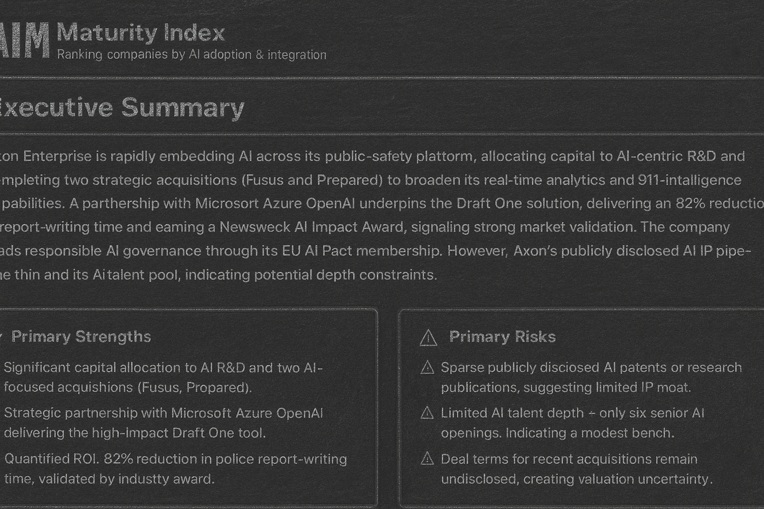 - AIM (AI Maturity Index): The quantitative score derived from this analysis, enabling consistent, evidence-based benchmarking across peer organizations.